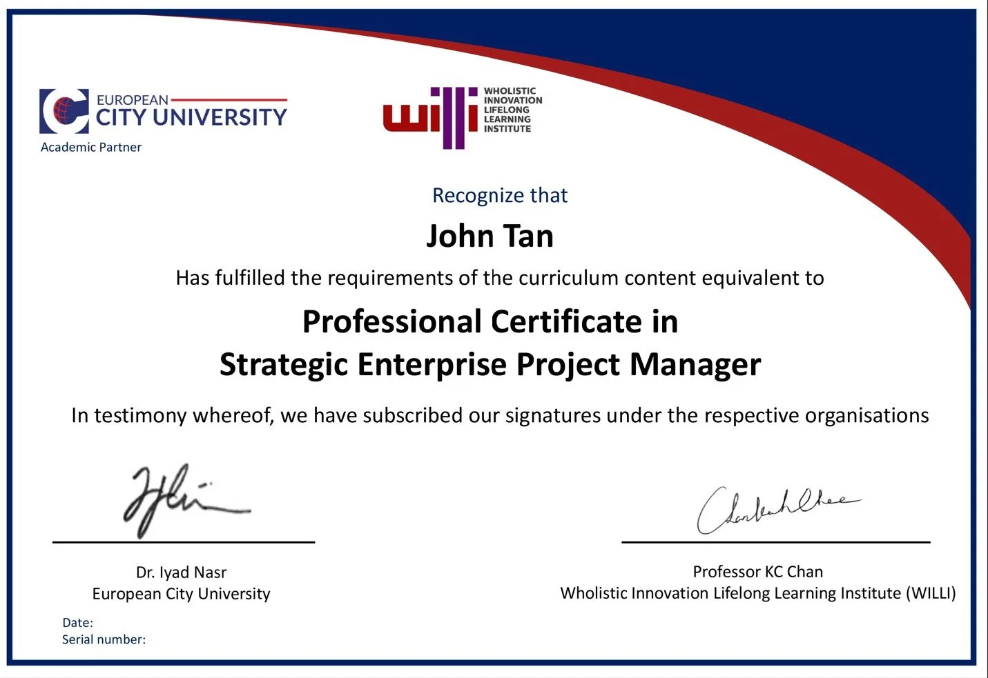 Be empowered to be the project manager to thrive amid the AI-driven project economy. This module connects change to modern project management. Learn the intricacy to transform the way you manage change, people, process and planet (technology). Navigate risks and challenges by applying action learning tools and Wholistic thinking in project management to bridge strategy-implement-operation-learning gap. Transform projects into tangible business results through coherent strategies across project, program and portfolio to align to organisation mission, vision and values.